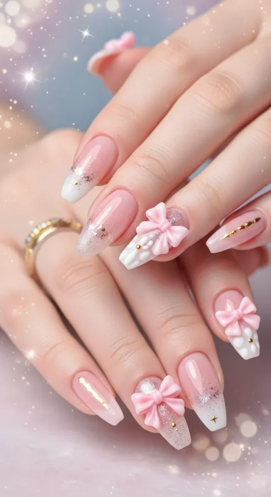 Gift yourself cute nails — literally! Add 3D bows or painted ribbons for a “present” look.