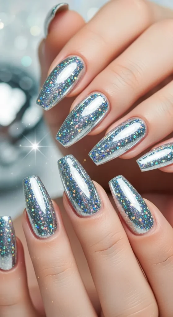 ✨ Pro tip: Pair glitter polish with a neutral base to keep it classy.