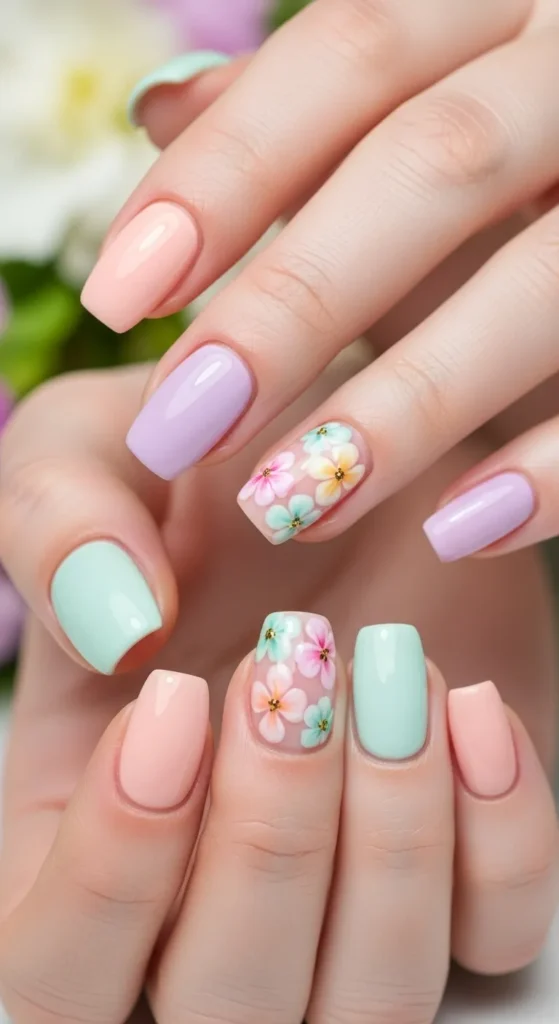10. Floral Pastel Nails
