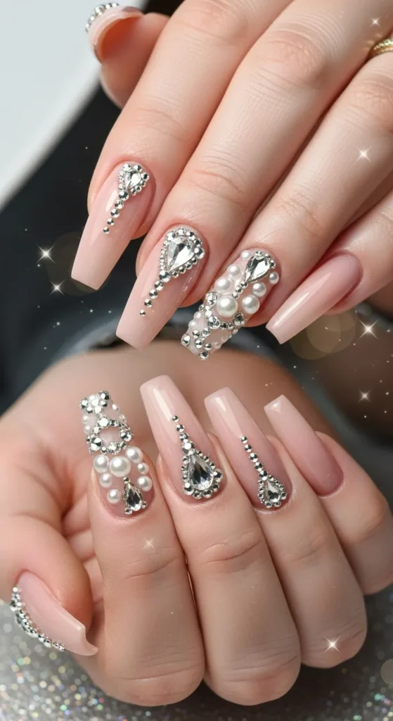 7. Rhinestone Glam Nails