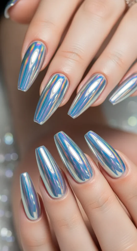 3. Holographic Chrome Nails
