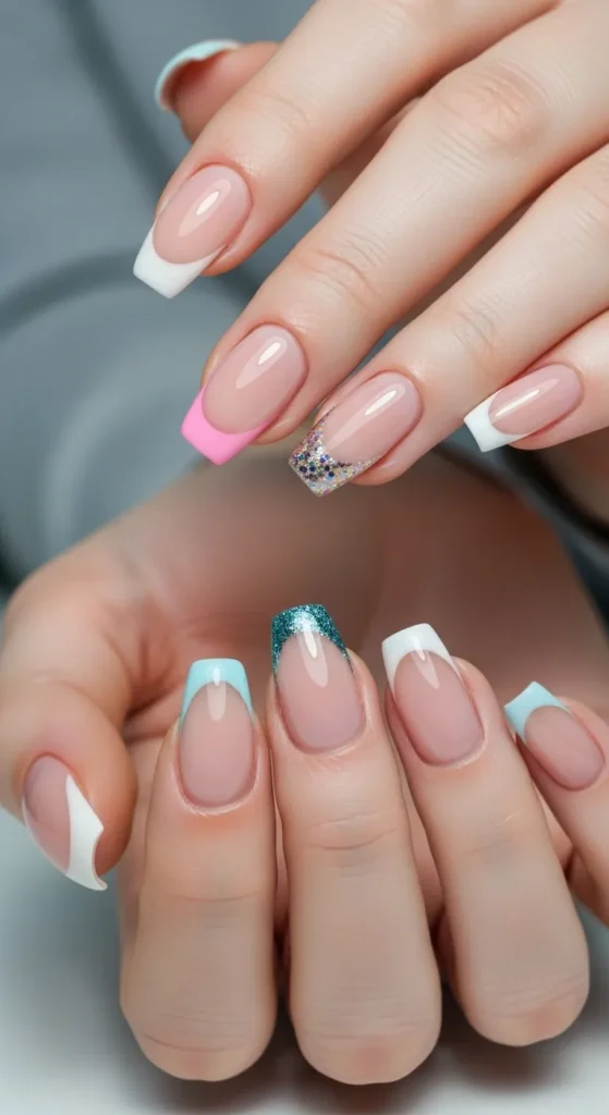 Upgrade your French manicure with colored or glitter tips. Try neon or pastel shades for a modern twist.