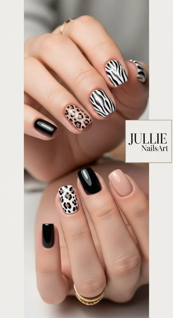 Animal prints like leopard, zebra, or cow patterns make short nails bold and fashionable. You can keep the base neutral and use black or brown spots for a trendy look. This style gives your short nails a wild yet classy appeal that grabs attention instantly.