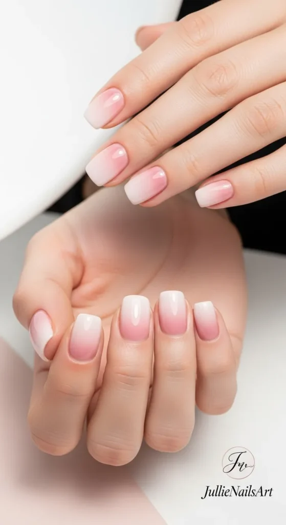 Ombre designs are soft, feminine, and visually stunning. Blend two or more colors like pink and white or nude and peach for a smooth gradient effect. This short nail idea looks beautiful for any season and gives your nails a unique touch of creativity.