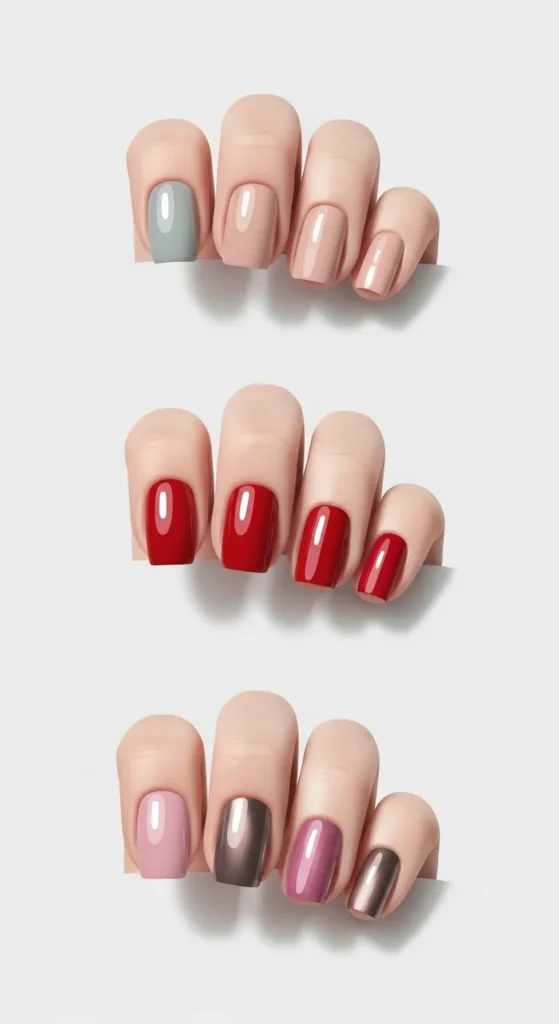 Romantic and cute, heart accent nails are perfect for date nights or Valentine’s season. Paint tiny hearts on one or two nails using a contrasting color. Pair soft pink with red or white for a lovely finish that complements any outfit.