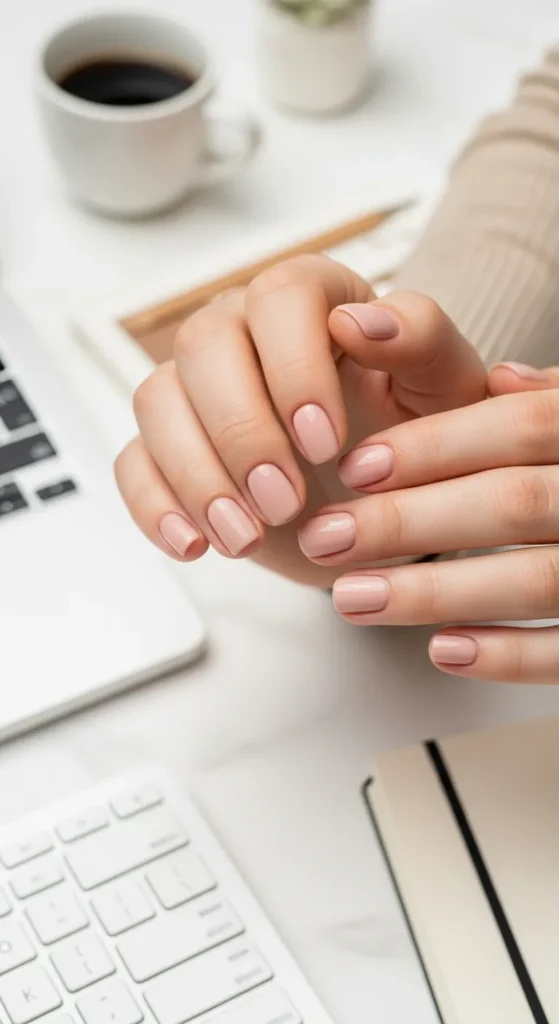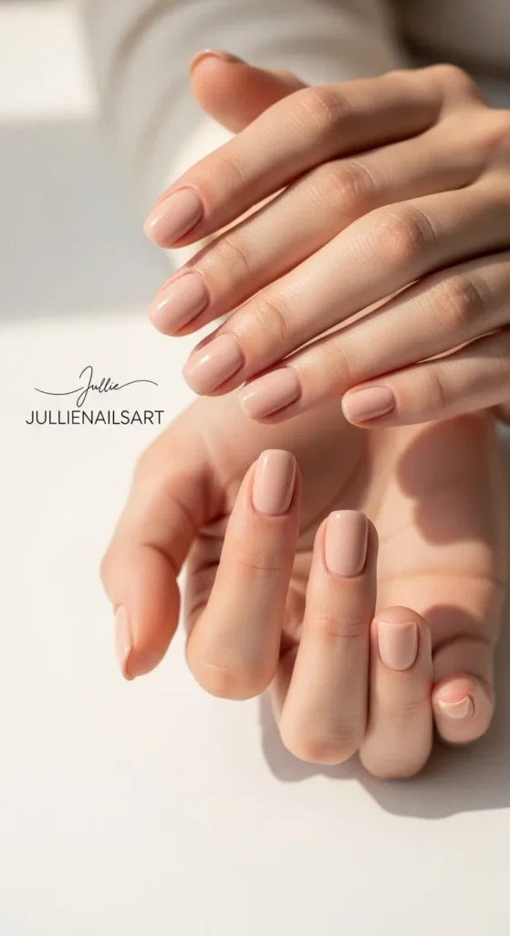 Nude shades never go out of style. These tones give your nails a neat and polished appearance that matches every outfit. Choose from beige, blush pink, or soft brown for a sophisticated look. This short nail idea is perfect for professional women who love elegance with simplicity.