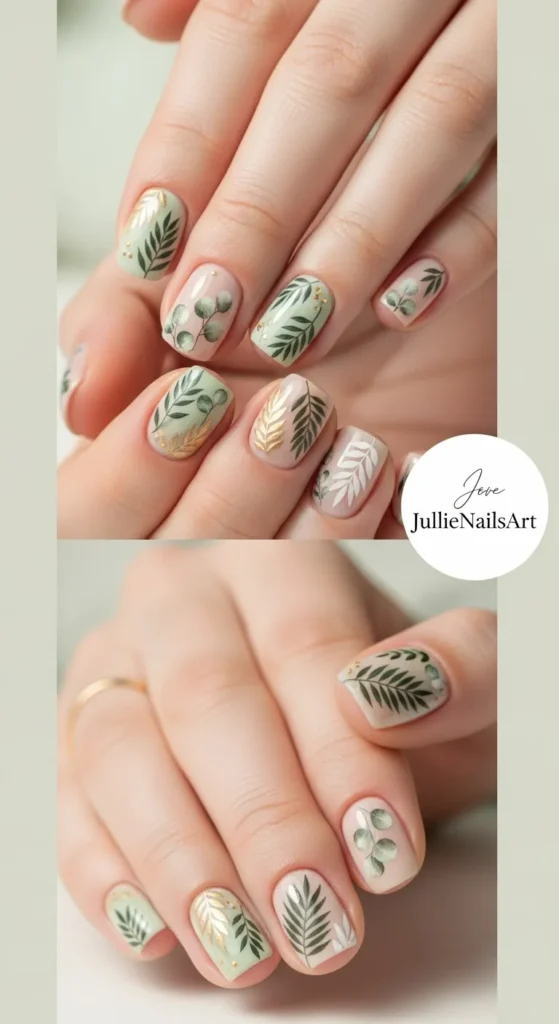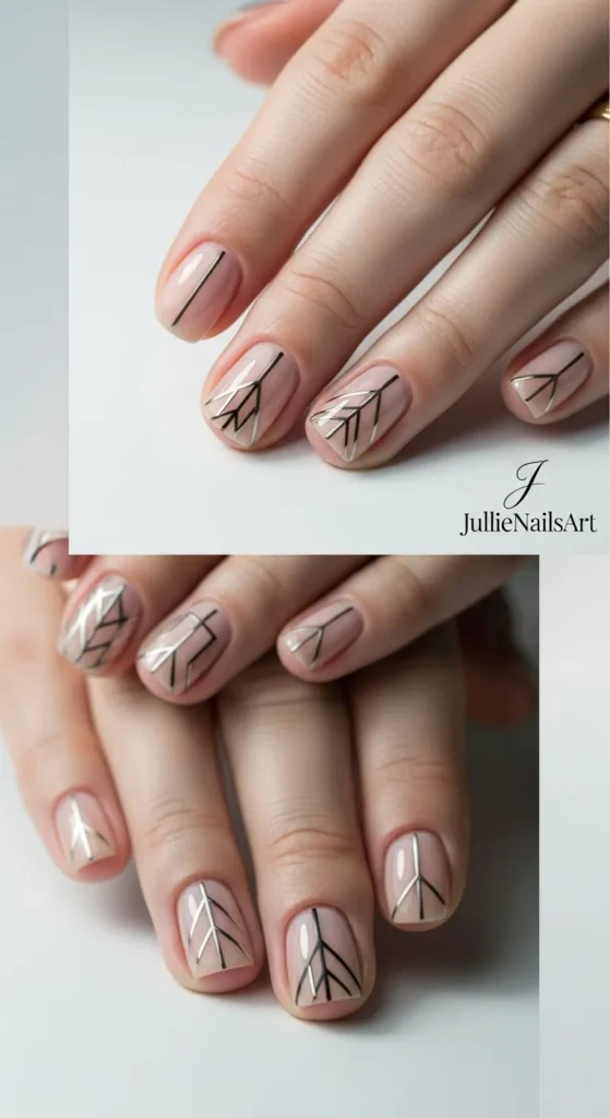 Leaf-inspired nail art brings a natural and calming vibe to your style. Use green, gold, or silver shades to draw simple leaves or use decals for a neat look. This design looks refreshing and suits both casual and outdoor occasions.