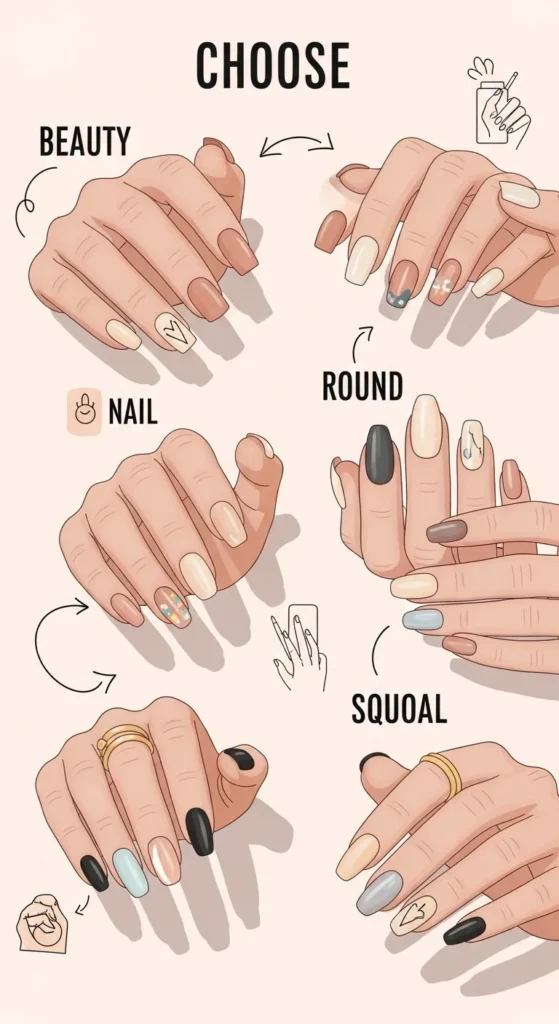 Before exploring designs, it’s important to choose the right shape for your short nails. The shape sets the tone for your entire manicure.