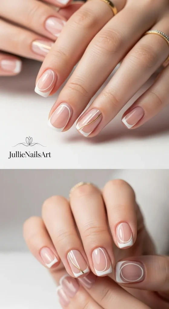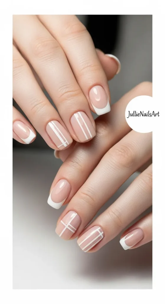 Simple line art in black or white over a nude base creates a modern and minimalist vibe. This short nail idea is subtle but stylish — perfect for professionals who prefer elegance with a creative edge.