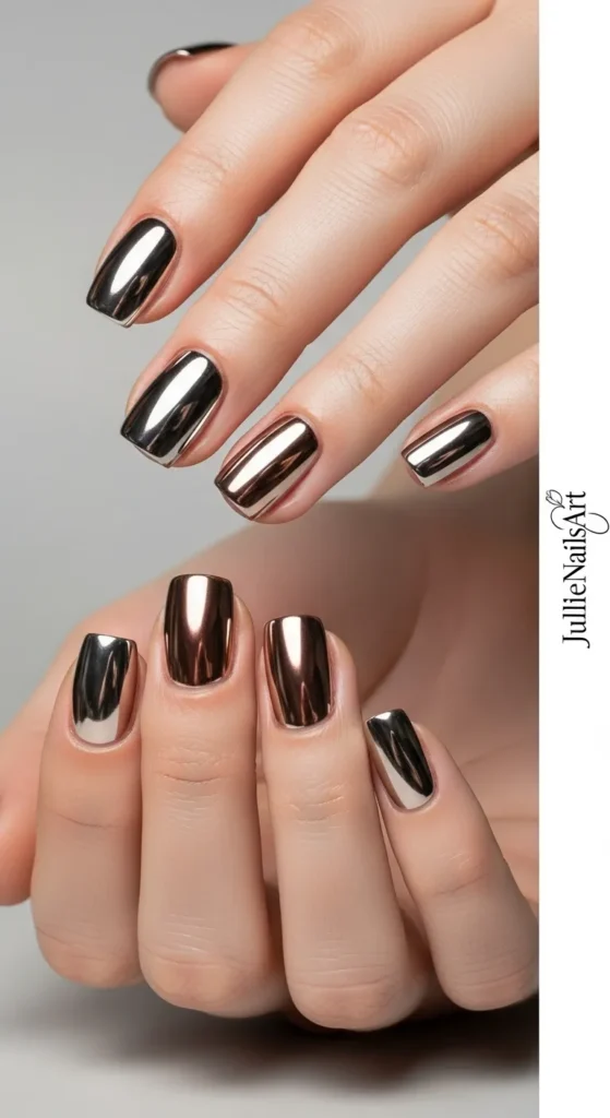 Chrome nails reflect light beautifully and give a futuristic shine. Silver, rose gold, and mirror chrome are popular options. This nail style instantly elevates your look and works perfectly for parties or evening events.