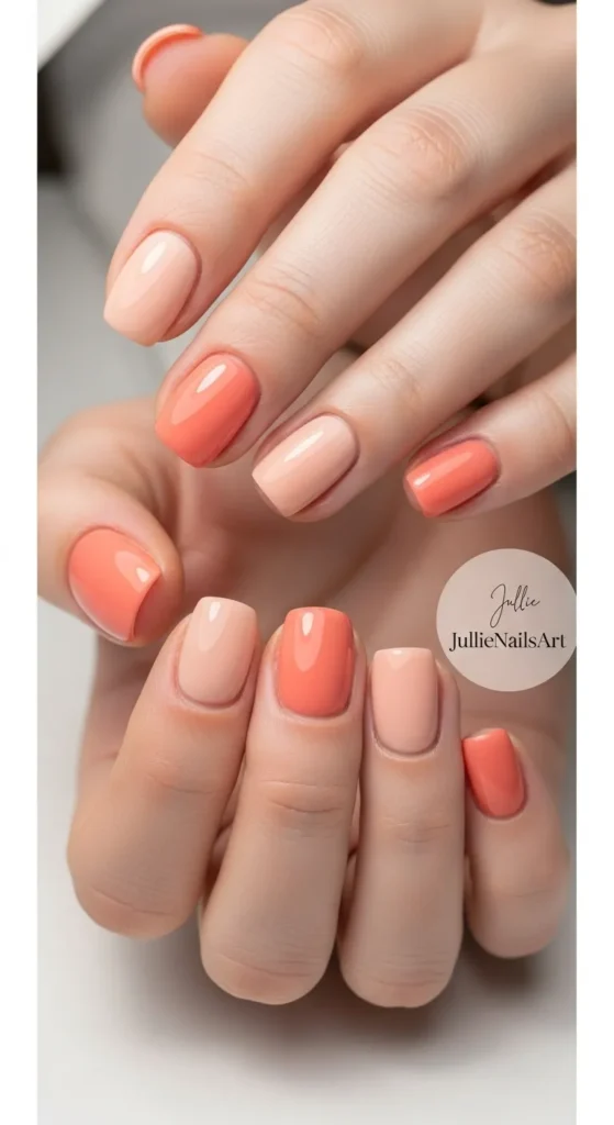 Peach shades bring a natural warmth to your nails. You can keep them simple or add a thin white line for detail. This short nail idea is fresh, feminine, and suitable for both casual and formal settings.