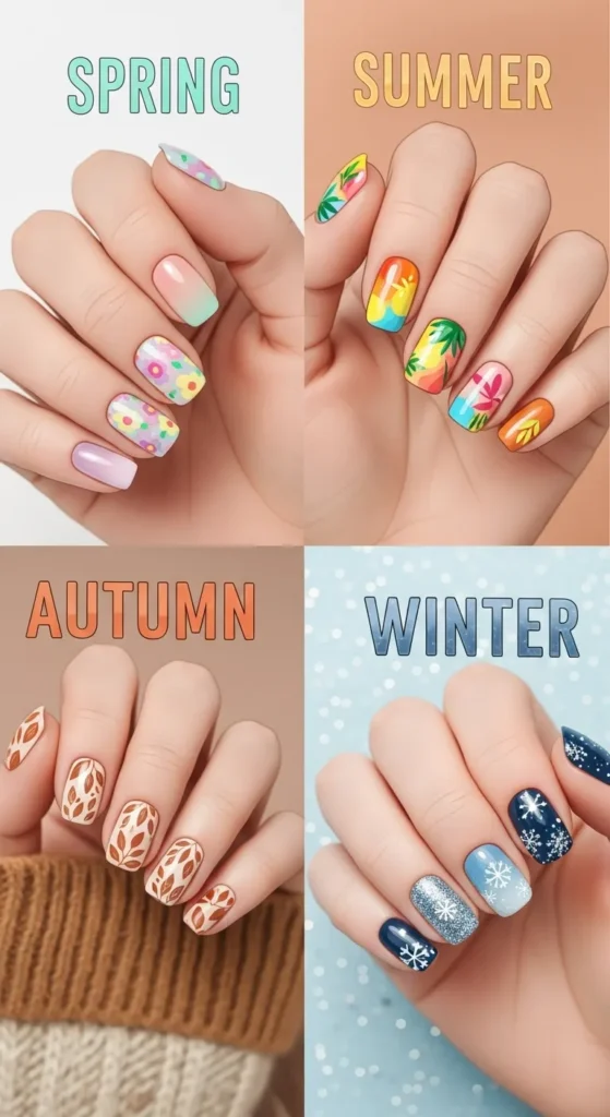 Your nails can also reflect the season you’re in. Here are some season-inspired short nail ideas: