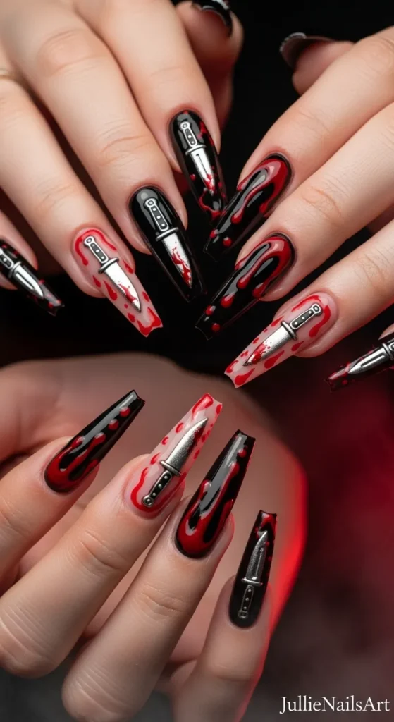 12. Knife and Blood Art Nails