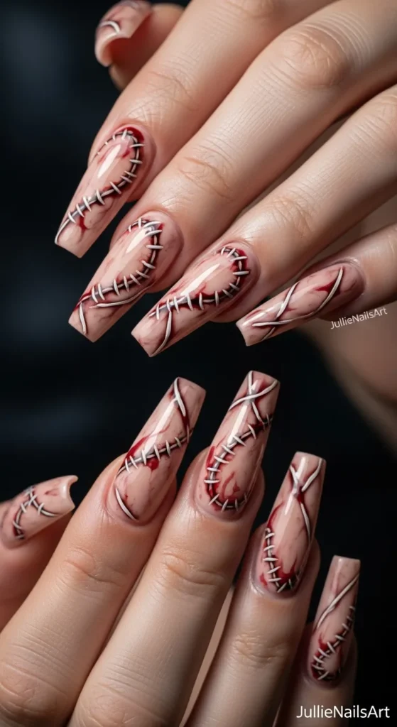 10. Stitched Skin Nails